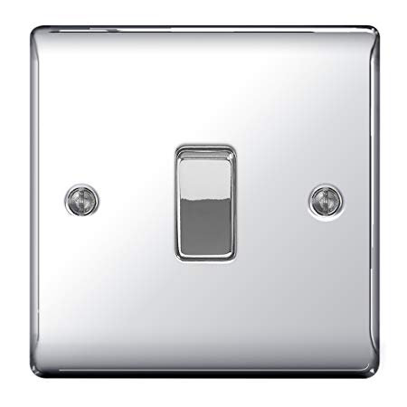 A 25 Year Guarantee On This Slim, Polished Chrome Intermediate 10 Amp 10AX Light Switch Plate, manufactured By British General.