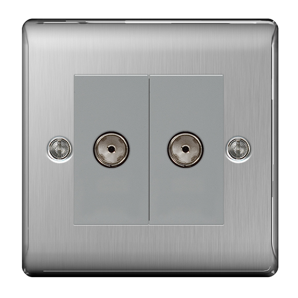 Nexus Satellite Socket, Co-Axial, 1 gang (Brushed Steel) (Product Code: NBS61)