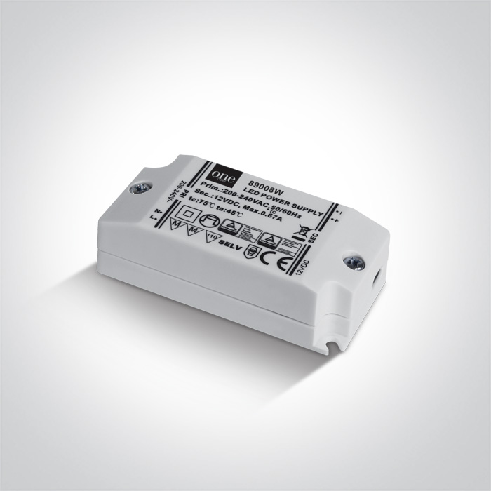 One-Light 220-240v 8W 12V DC Constant Voltage LED driver (Product Code: 89008W)